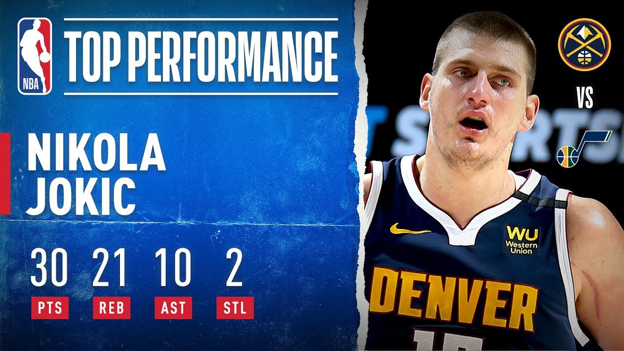 Avec un énorme triple double, Nikola Jokic fait plier le Jazz. L'intérieur du Colorado inscrit 30 points à 14/24 aux tirs, 0/2 à trois points, 2/4 aux lancers francs, 21 rebonds (!), 10 passes décisives en 40 minutes de temps de jeu. Selon la NBA, Jokic est seulement le 10ème joueur NBA à accomplir un triple double avec au moins 30 points, 20 rebonds et 10 passes. Rudy Gobert, 16 points et 14 prises sous le cercle, n'a rien pu faire.