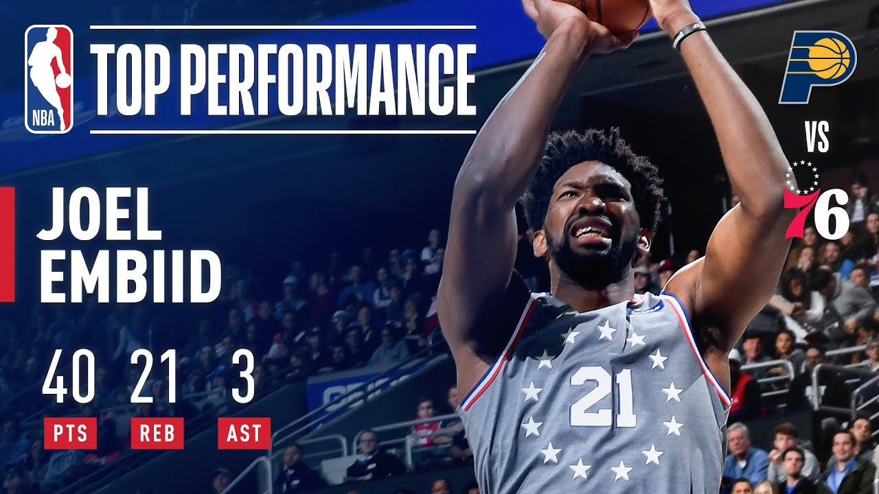 NOP 116Malgré 40 points à 13/22 aux tirs dont 1/6 à trois points, 13/16 aux lancers francs, 21 rebonds (!) et 3 passes décisives en 34 minutes de temps de jeu, Joel Embiid surnage face aux Pacers mais Philadelphia chute.