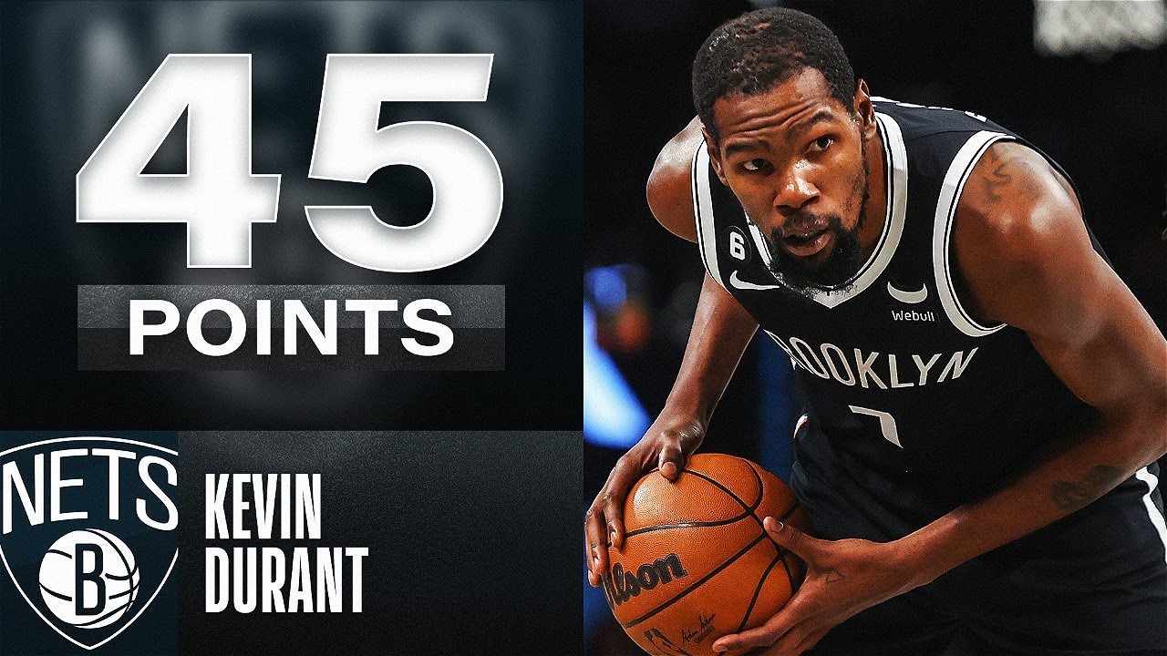 NOP 116Auteur de 45 points à une adresse folle de 19/24 aux tirs dont 3/5 à trois points, 4/4 aux lancers francs, 7 rebonds, 5 passes décisives, 2 interceptions et 2 contres en 39 minutes de temps de jeu, Kevin Durant réalise un match quasi parfait. Brooklyn s'impose 109 à 102 face à Orlando.