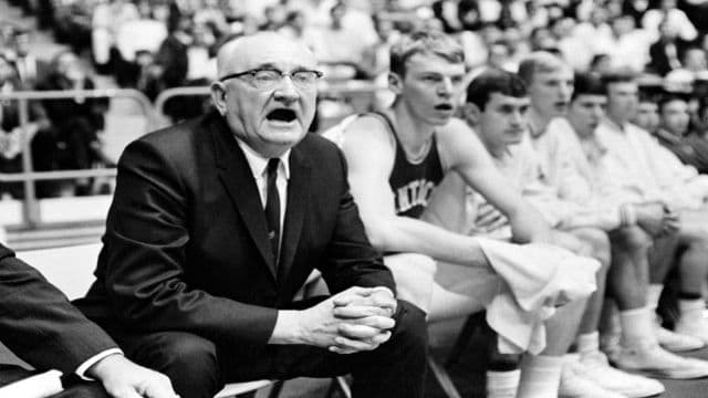 42 ans ! Entre 1930 et 1972, Adolph Rupp a passé 42 années de sa vie à coacher l'équipe universitaire de Kentucky. C'était presque sa raison de vivre. La raison de sa longévité ? Son succès ! Il a remporté 4 fois le titre de champion NCAA avec les Wildcats. Il a démarré sur le banc plus de 1000 matchs de basket pour un pourcentage de 82% de victoires ! 876 pour être précis. En 42 ans de coaching, il n'a jamais connu de bilan négatif, jamais ! Il est une légende pour l'université de Kentucky. Aujourd'hui, la salle de basket porte son nom, un honneur immense pour lui et sa famille. Au-delà de Kentucky, il est également l'un des meilleurs coachs de l'histoire de la NCAA. C'est avec un grand respect que nous reconnaissons Adolph Rupp comme le meilleur coach de l'histoire des Wildcats !