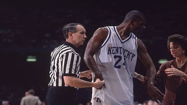 On quitte temporairement la décennie 2010 pour revenir vers le basket des années 90 dont beaucoup sont nostalgiques ! Notre ailier est Jamal Mashburn. Sa première année en 1990 à Kentucky n'est pas la plus remarquée, il score 12.9 points par match et les résultats de l'équipe sont décevants. Mashburn va devenir un joueur à surveiller dès sa seconde année NCAA. Un réel progrès est à observer puisqu'il élève ses stats avec 21.3 points et 7.8 rebonds par match. Il s'affirme comme un tireur d'élite à 56% au tir dont 44% à trois points. On pourrait presque lui reprocher de ne pas tenter assez de tirs tant son efficacité est diabolique. L'équipe de Rick Pitino profite de son niveau pour devenir une meilleure équipe. Ils terminent second de leur conférence et atteignent les huitièmes de finales du tournoi NCAA, les progrès sont réels. La troisième et dernière année de Mashburn avec les Wildcats sera la meilleure. Probablement en gain de confiance après son année sophomore, il prend d'avantage le jeu à son compte pour une réussite mitigée. Il marque toujours ses 21 points par match mais ses pourcentages au tir chutent. Pourtant, il est enfin reconnu comme un joueur majeur du championnat et il est récompensé avec le titre de joueur de l'année en conférence Sud-Est. Il a aussi droit à une nomination dans la All-American First Team. Ces récompenses, il les obtient principalement grâce aux résultats de ses Wildcats qui réalisent une saison excellente avec 23 victoires et défaites. Outsider dans le tournoi, Kentucky fera valoir ses forces jusqu'au Final Four avant de perdre face à Michigan, le grand favori.