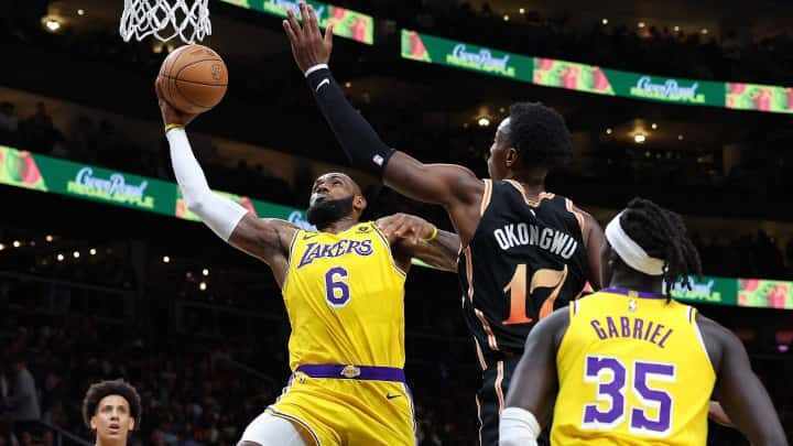 Pour son 38ème anniversaire, LeBron James fait les choses en grand. Le King inscrit son record de points personnel cette saison avec 47 points (dont 16 dans le dernier quart-temps), 10 rebonds et 9 passes décisives, échouant à une passe d'un triple double. Plus important, les Lakers privés d'Anthony Davis pour encore quelques semaines, l'emportent face aux Hawks 130 à 121. Atlanta, parlons en, alterne le bon et le mauvais cette saison à l'image des 29 points de Trae Young à seulement 11/24 aux tirs.