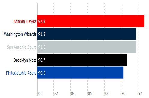 Atlanta domine ces deux catégories, mais ceci n'est pas une surprise dans le sens où déjà l'année dernière les hommes de Budenholzer dominaient dans ce secteur de jeu étant respectivement classés n°2 et n°9. Shaun Powell - statisticiens chez NBA.com - souligne d'ailleurs un élément intéressant :
