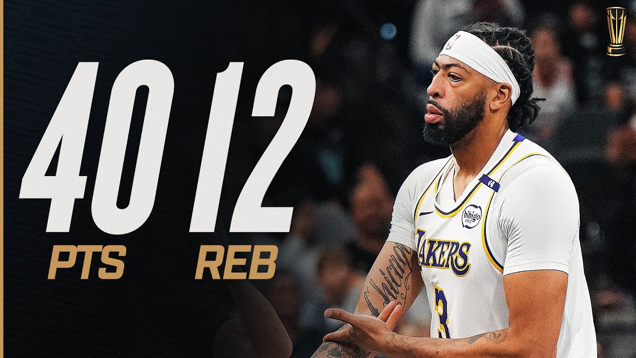 LAL 119 (31-19) Dans la victoire des Lakers sur les Spurs 120 à 115, Anthony Davis survole le match avec 40 points à 14/26 aux tirs dont 2/4 à trois points, 10/12 aux lancers francs et 12 rebonds.