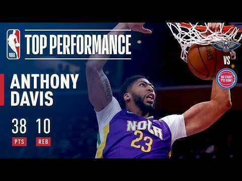 HOU (34-21) 03h30En l'absence de DeMarcus Cousins out pour la saison, Anthony Davis prend les choses en mains et l'intérieur des Pelicans cartonne offensivement. Dans la victoire face aux Pistons 118 à 103, Davis compile 38 points à 14/24, 3/6 à trois points, 7/7 aux lancers francs, 10 rebonds et 2 contres en 37 minutes de temps de jeu.