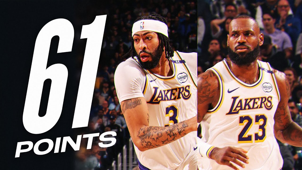 LAC (23-26) 04h30Dans la victoire des Lakers sur les Warriors 118 à 108 sur la baie de San Francisco, Anthony Davis (36 points et 13 rebonds) et LeBron James (25 points, 12 passes décisives et 5 rebonds) dominent outrageusement.