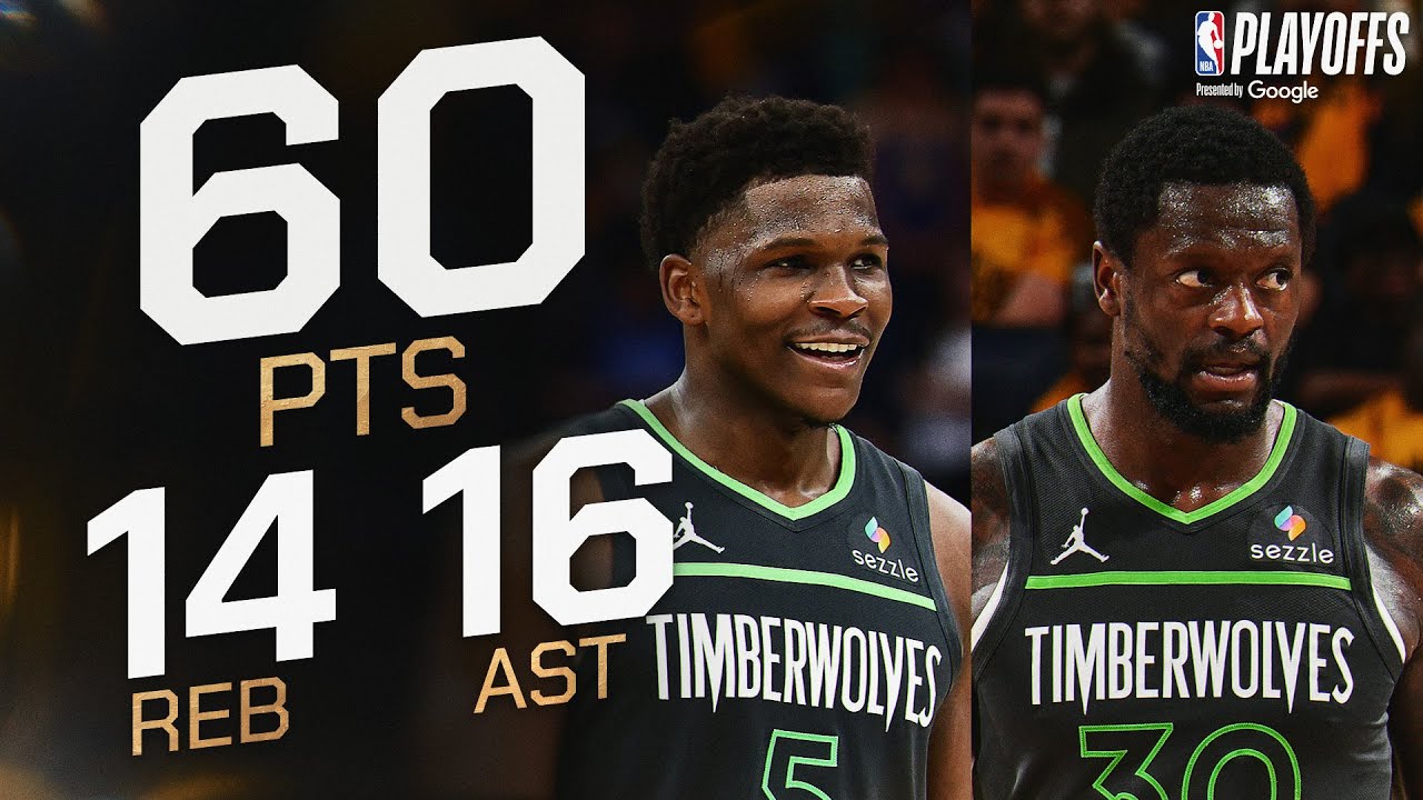 NOP02h00Dans la victoire des Timberwolves 102 à 97 face aux Warriors au Chase Center, Anthony Edwards et Julius Randle dominent le match avec un total de 60 points, 14 rebonds et 16 passes décisives. Individuellement, Ant-Man est à 36 points à 13/28 aux tirs dont 5/14 à trois points, 5/8 aux lancers francs, 4 rebonds et 4 passes tandis que le gaucher Randle est en triple double, 24 points, 10 rebonds et 12 passes.