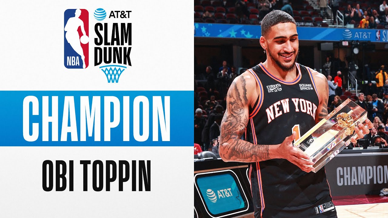Au Rocket Mortgage FiledHouse de Cleveland, Obi Toppin remporte le concours de dunks face aux adversaires Cole Anthony, Juan Toscano-Anderson et Jalen Green.