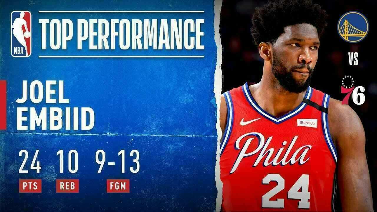 En hommage à Kobe Bryant, Joel Embiid fait parti des joueurs ayant porté le numéro 24 de la légende des Lakers. D'autant plus que dans la victoire des Sixers face aux Warriors 115 à 104, Embiid a inscrit 24 points dont son 24ème point en fadeaway avec les fans qui ont scandé "Kobe, Kobe, Kobe...". L'intérieur All Star tire à 9/13 et ajoute 10 rebonds.