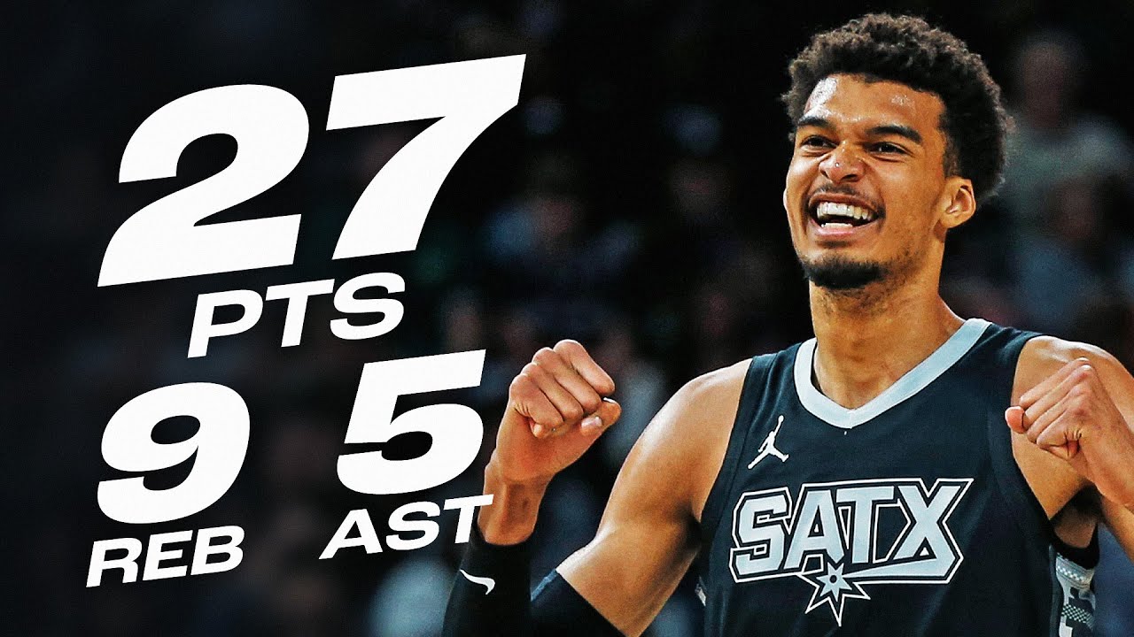 LAC 91 (23-27) Dans la victoire nette et sans bavure des Spurs sur les Clippers 122 à 86 (+36 !), Victor Wembanyama score 27 points à 10/18 aux tirs, 1/6 à trois points, 6/7 aux lancers francs, 9 rebonds, 5 passes décisives et 3 contres en 26 minutes de temps de jeu.