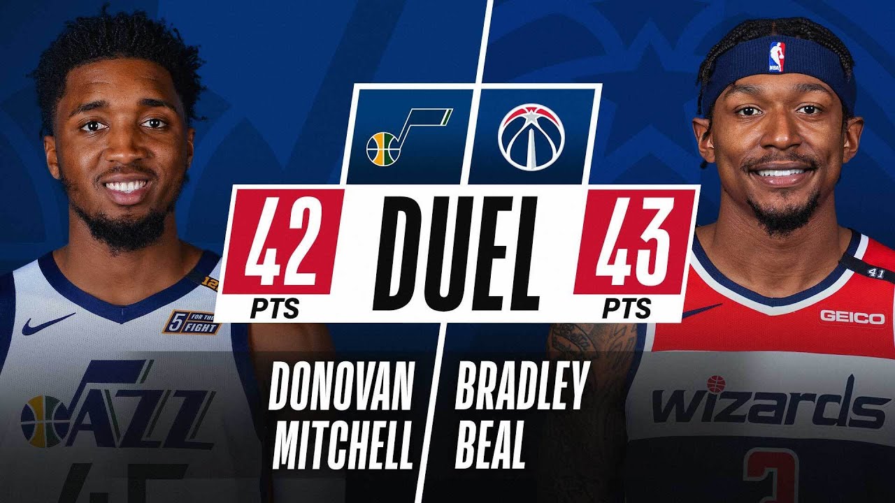 Dans la victoire surprise du Jazz sur les Wizards 131 à 122, Bradley Beal inscrit 43 points à 16/24 aux tirs dont 4/6 à trois points, 7/8 aux lancers francs et 5 passes décisives en 39 minutes de temps de jeu. Pour Utah, Donovan Mitchell rétorque avec 42 points à 16/30 dont 4/12 derrière l'arc, 6/7 aux LF, 6 passes et 4 rebonds en 39 minutes. Au jeu des étincelles, le gunner de la capitale américaine gagne son duel avec une belle victoire. À noter également le triple double de Russell Westbrook, 35-15-13 !