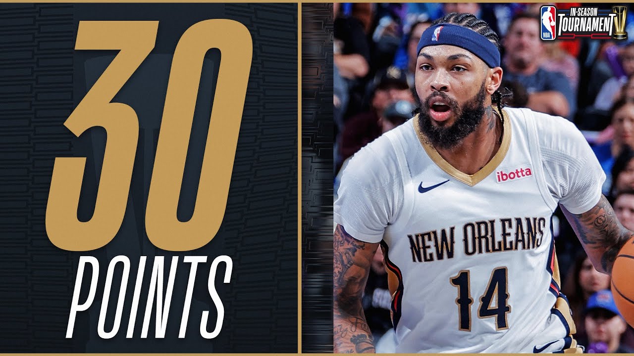 MIN 96 (32-22) Belle victoire des Pelicans 127 à 117 face aux Kings en quart de finale de la NBA Cup. Au Golden 1 Center de Sacramento, Brandon Ingram signe 30 points à 10/20 aux tirs dont 3/6 à trois points, 7/9 aux lancers francs, 8 rebonds et 6 passes décisives. Côté Kings, De'Aaron Fox rétorque avec 30 points, 5 rebonds et 4 passes tandis que Domantas Sabonis complète un triple double, 26-13-10.