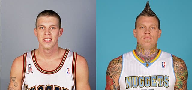 Et puis, en 2001, les Nuggets décident de lui donner une chance de faire son trou en NBA. Il passe trois saisons du côté de Denver pour un faible rendement statistique : 4 points et 4 rebonds en moyenne et jamais plus de 15 minutes de jeu. En 2004, il est transféré à la Nouvelle-Orléans et le grand public le découvre lors du All-Star Game 2005 et plus particulièrement au cours du Slam Dunk Contest. Un blanc au Slam Dunk Contest ? Un blanc sûr de lui ? Des cheveux longs, quelques tatouages sur les bras. Il n’en faut pas plus pour faire le buzz. Hélas, il est loin de survoler le concours et en devient même ridicule !