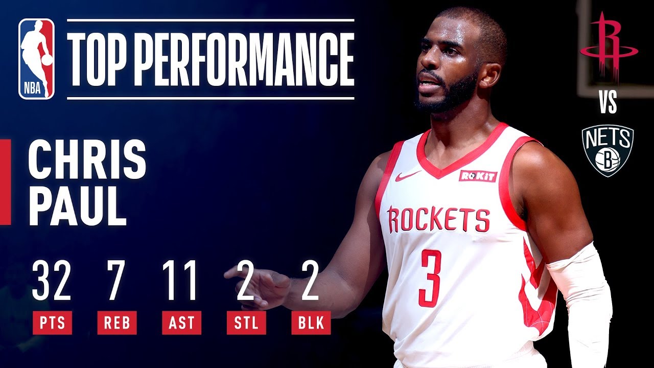 NYK (35-21) 02h30Auteur de 32 points à 13/27 aux tirs dont 5/12 à trois points, 1/1 aux lancers francs, 11 passes décisives et 7 rebonds, Chris Paul pallie au mieux l'absence de James Harden. On note également les 22 points et 13 prises sous le cercle de Clint Capela.