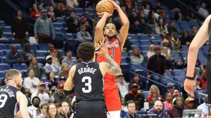 Dans la victoire des Pelicans sur le Jazz 123 à 119 en prolongation au Smoothie King Center, CJ McCollum inscrit 6 de ses 45 points en OT, 18/31 aux tirs dont 5/12 à trois points, 4/4 aux lancers francs, 8 rebonds, 4 passes décisives et 3 contres en 44 minutes de temps de jeu. Dejounte Murray ajoute 26-11-9, 24 points et 7 rebonds de Trey Murphy III. NOLA remonte un comeback de 25 points, c'est d'ailleurs un record pour la franchise.