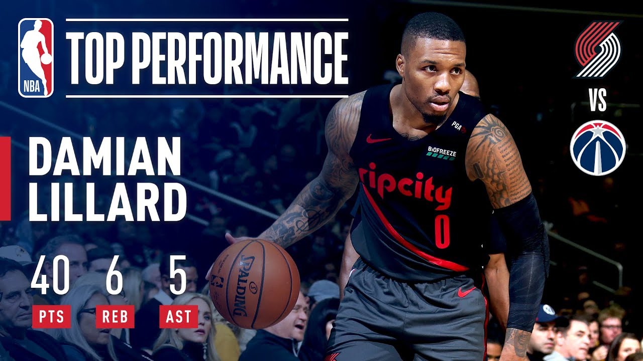 NYK (35-21) 02h30Auteur de 40 points à 12/29 aux tirs dont 3/10 à trois points, 13/15 aux lancers francs, 6 rebonds et 5 passes décisives en 38 minutes de temps de jeu, Damian Lillard torpille et enfonce les Wizards déjà pas au mieux.