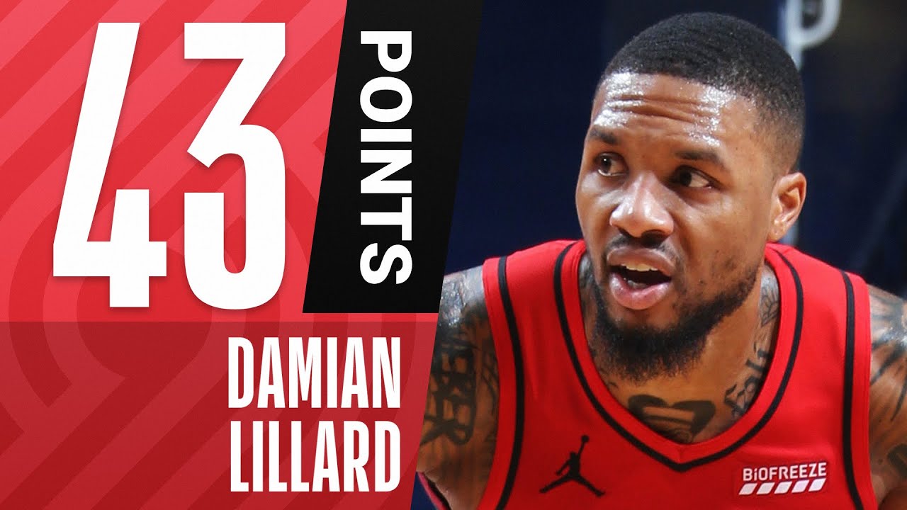 NOP 116Face aux Pelicans, Damian Lillard enregistre 43 points à 14/28 aux tirs dont 7/16 à trois points, un parfait 8/8 aux lancers francs, 16 passes décisives et 4 rebonds en 38 minutes de temps de jeu. De quoi donner le tournis à New Orleans car Lillard a joué sur deux fronts, au scoring et à la passe !