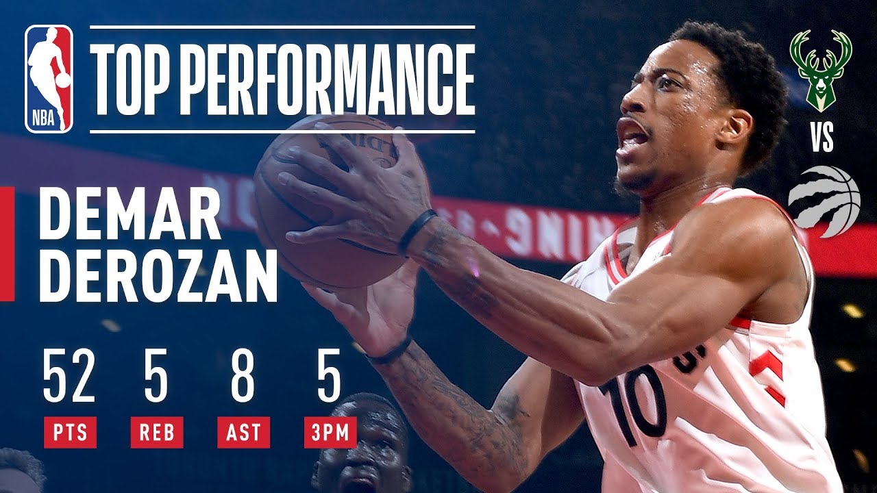 SAC 126 (12-42) Vexé de ne pas avoir joué lors du Christmas Day, DeMar DeRozan se venge avec une performance historique le premier jour de l'année. Dans la victoire en prolongation face aux Bucks 131 à 127, DeMar DeRozan inscrit la bagatelle de 52 points à 17/29 aux tirs, 5/9 à trois points, un parfait 13/13 aux lancers francs, 8 passes décisives et 5 rebonds en 43 minutes de temps de jeu. DeRozan devient le 3ème Raptor à marquer plus de 50 points, 51 pour Vince Carter et Terrence Ross. Il s'agit de la 12ème victoire de suite à la maison pour les Raptors. Toronto est actuellement second de la Conférence Est avec 25 victoires et 10 défaites (5 victoires de moins que Boston, premier) tandis que Milwaukee pointe à la sixième place avec 19 victoires et 16 défaites.
