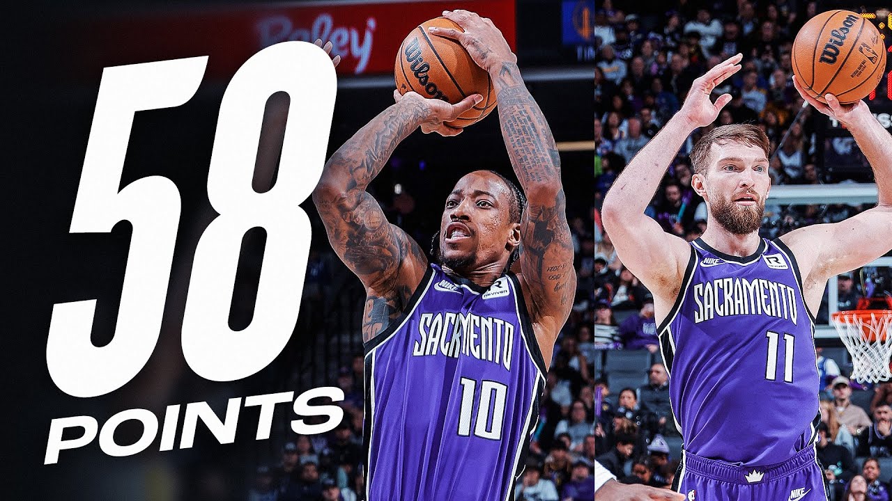 LAC (23-26) 04h30Dans la victoire des Kings sur les Warriors 123 à 117, DeMar DeRozan et Domantas Sabonis compilent 58 points. Individuellement, DeRozan est à 32 points à 12/21 aux tirs dont 3/6 à trois points, 5/6 aux lancers francs et 5 rebonds en 39 minutes de temps de jeu. Sabonis ajoute un solide double double avec 26 points et 18 rebonds en 39 minutes.