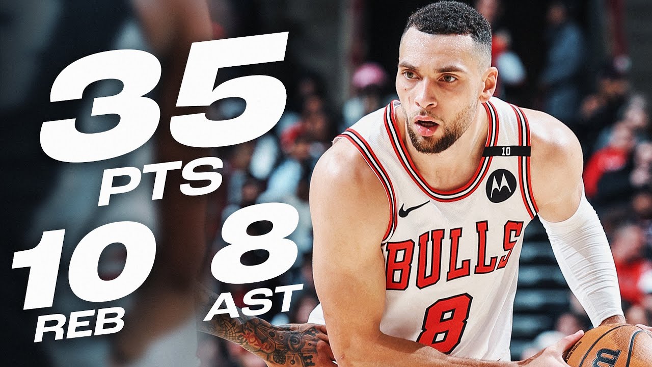 LAC 91 (23-27) Dans la courte victoire des Bulls sur les Spurs 114 à 110, Zach LaVine signe 35 points à 13/25 aux tirs dont 3/6 à trois points, 2/2 aux lancers francs, 10 rebonds et 8 passes décisives en 40 minutes de temps de jeu. Coby White qui postérise salement Victor Wembanyama, termine à 23 points. Vous pouvez retrouyvez son dunk sur le X ci-dessus. On relève aussi 24 points et 11 rebonds de Nikola Vucevic.