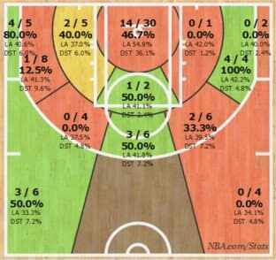 Comme on peut le voir dans sa shotchart, le joueur est bien plus efficace près du cercle et multiplier ce genre de shoots. Mais c'est surtout son coach et ses coéquipiers qui devraient l'amener à évoluer dans ce registre. Ainsi, en privilégiant le jeu sans ballon avec des cuts intelligentes vers le panier ou dans le dos de la défense, il apporterait la même impacte (ou presque !) que Dwyane Wade au Heat. D'ailleurs leurs qualités de pénétration et leurs vivacités sont des points communs qui sont bien mieux exploités par Flash.