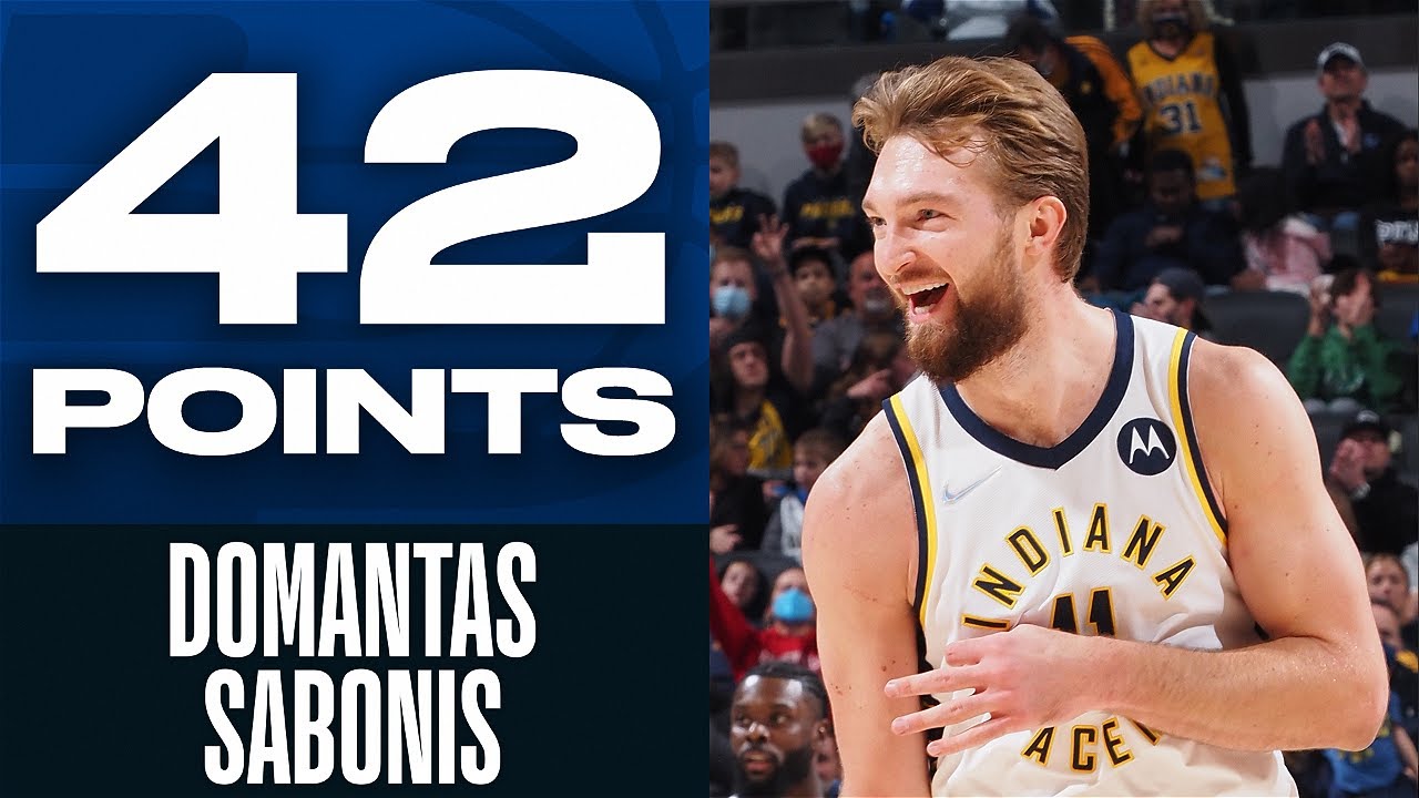 Dans la victoire des Pacers sur le Jazz 125 à 113, Domantas Sabonis inscrit 42 points (record en carrière) à un quasi parfait 18/22 aux tirs, 3/4 à trois points, 3/4 aux lancers francs, 6 rebonds et 3 passes décisives en 38 minutes de temps de jeu.