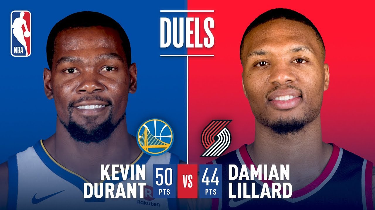 HOU (34-21) 03h30Nous avons eu droit à un superbe match entre les Warriors et les Trail Blazers. Deux oppositions entre les bombardiers longue distance que sont Kevin Durant et Damian Lillard. Si Kevin Durant inscrit son record personnel de points avec Golden State, il n'a cependant pas pu éviter la défaite des siens. KD marque la bagatelle de 50 points à 17/27 aux tirs, 6/14 à trois points, 10/10 aux lancers francs, 7 rebonds et 6 passes décisives en 37 minutes de temps de jeu. Mais les Warriors tombent sur un Damian Lillard chaud bouillant. L'arrière des Trail Blazers rétorque avec 44 points à 14/25 dont 4/11 à trois points, 12/12 aux lancers francs, 8 passes et 3 rebonds en 40 minutes de temps de jeu. Portland a su garder son avance du premier quart-temps, remporté 40 à 27.