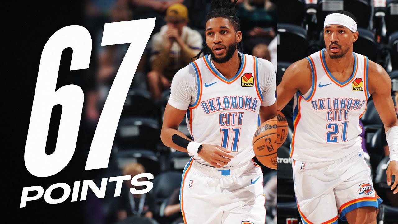 NOP 116Même depuis le banc, le Thunder a des ressources. En effet, dans la large victoire d'OKC sur le Jazz 145 à 111, Aaron Wiggins et Isaiah Joe totalisent 67 points. Individuellement, Wiggins est à 35 points à 14/24 aux tirs dont 4/10 à trois points, 3/4 aux lancers francs et 7 rebonds tandis que Joe ajoute 32 points à 11/15 dont un terrible 10/14 à trois points, 9 passes décisives et 5 rebonds. Les cadres Shai Gilgeous-Alexander et Jalen Williams sont au repos.
