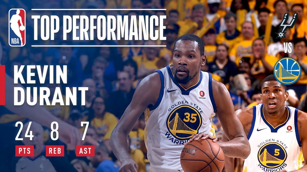 LAC (27-29) 03h00Auteur de 24 points à 9/17 aux tirs, 1/4 à trois points, 5/5 aux lancers francs, 8 rebonds et 7 passes décisives en 32 minutes de temps de jeu, Kevin Durant ne tremble pas face à des Spurs clairement en dessous.
