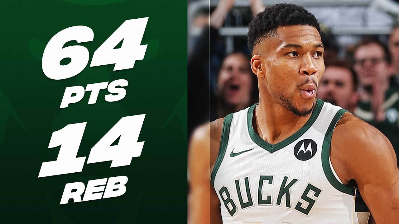 MIN 96 (32-22) Auteur de 64 points à 20/28 aux tirs dont 0/3 à trois points, 24/32 aux lancers francs, 14 rebonds, 4 interceptions, 3 passes décisives et 4 ballons perdus en 37 minutes de temps de jeu, Giannis Antetokounmpo réalise un nouveau record en carrière, anciennement à 55 points en Janvier 2023 face aux Wizards. Milwaukee l'emporte 140 à 126 face à Indiana. Le Greek Freak efface des tablettes le record de franchise de Michael Redd qui avait inscrit 57 points en 2006 dans la défaite des Bucks face au Jazz 113 à 111.