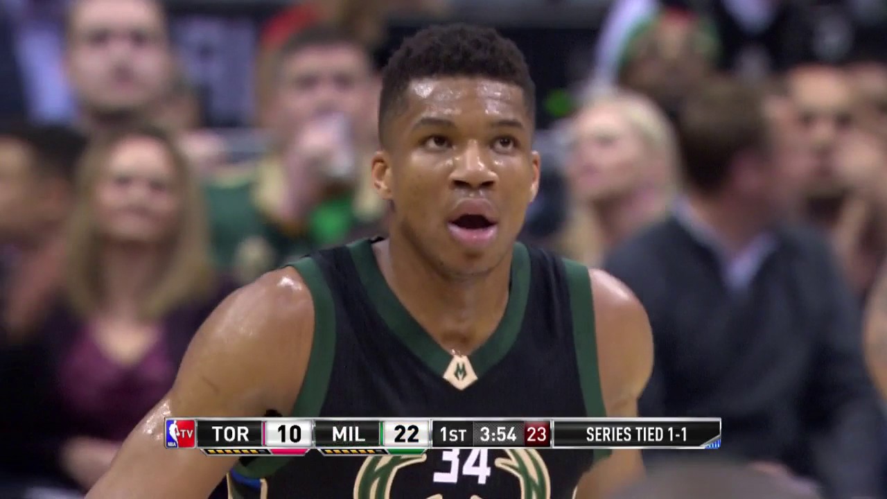 LAL (30-19) 04h00Avec 55 points pour le trio Giannis Antetokounmpo, Greg Monroe et Khris Middleton, les Raptors ne suivent pas et sont désormais menés 2 à 1 par les jeunes Bucks. Antetokounmpo marque 19 points à 70%, 2/2 à trois points, 8 rebonds et 4 passes décisives. Greg Monroe sort du banc avec 16 points à 6/11 et 7 rebonds tandis que Khris Middleton score 20 points à 8/15 et 7 passes. Toronto implose avec seulement 33,8% de réussite aux tirs et doute de plus en plus dans cette série. Highlights du Big Three des Bucks de Milwaukee.
