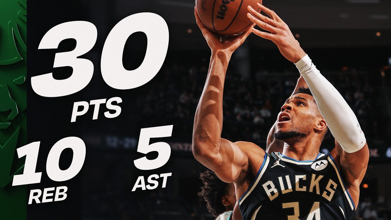 Giannis Antetokounmpo a conclu la rencontre par un dunk sur passe lobée de Kevin Porter Jr à 4.7 secondes de la fin, permettant aux Milwaukee Bucks de battre les Charlotte Hornets 122-121 vendredi soir.