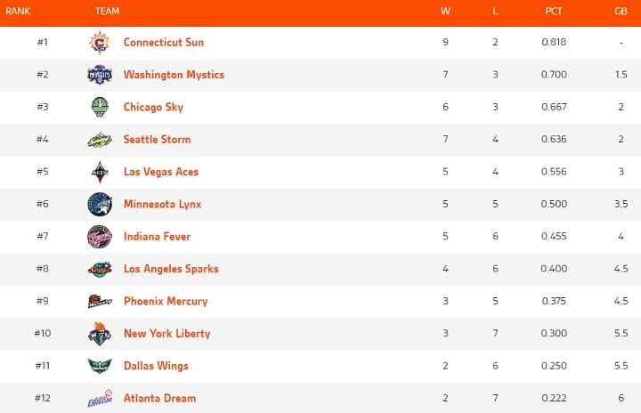 Cette saison, le Sky fait à nouveau peur. En cause, un style de jeu bien mis en place par James Wade qui donne énormément de liberté à Courtney Vandersloot pour laisser exploser son talent. La joueuse de 30 ans réalise une saison de All-Star et ce qui permet à toutes les membres du 5 majeur de s’éclater en attaque. Chicago a ainsi stoppé la série de 7 victoire de suite de Connecticut ce weekend. Washington a également réalisé une semaine canon en infligeant trois roustes de suite (+29 face à Los Angeles, +23 à Las Vegas et +26 à Atlanta). Quand elle en a envie, Elena Delle Donne est tout simplement trop forte et Kristi Tolliver a passé le cap des 4000 points en carrière et est devenue la 9ème joueuse au classement des trois points marqués.