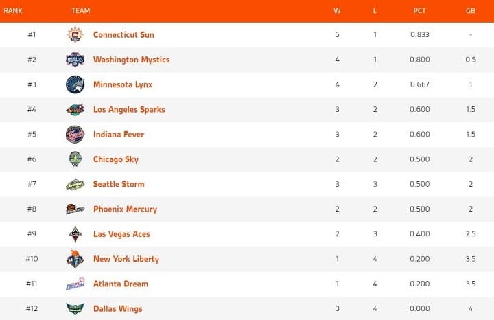 En tout début de semaine, nous allons avoir le droit au sommet du classement entre Connecticut, leader, et son dauphin Washington. Il s'agit là d'un choc des cultures entre l'équipe d'Elena Delle Donne, déjà très en forme, et celle de Jonquel Jones en feu dans tous les aspects du jeu sur ce début de saison (meilleure rebondeuse et contreuse de la WNBA notamment). Il sera intéressant de voir comment les Mystics vont s'adapter au départ d'Emma Meesseman, partie rejoindre la sélection belge en vue de l'Eurobasket qui se tient cet été.