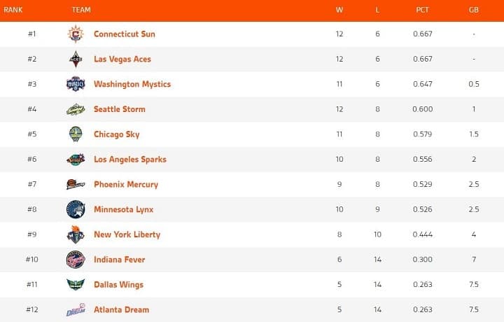 Dans une ligue au classement aussi resserré, chaque série de victoires peut faire énormément de bien. Le Sky et le Storm en sont à quatre victoires de suite chacun et ceci leur a permis de remonter à la quatrième et cinquième place du classement. La combativité de Seattle les a grandement aider pour battre notamment Minnesota et Las Vegas, tandis que le Sky a eu des adversaires en apparence plus faibles mais non moins tenaces qui leur ont demandé de batailler à tout instant.