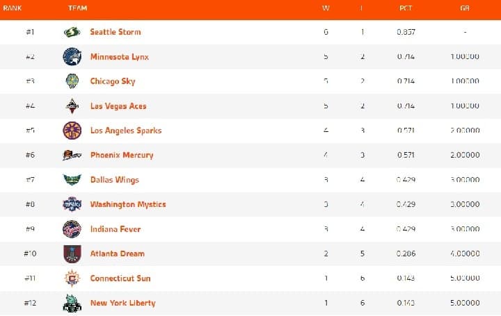 Si l’année dernière Seattle passait un peu sous les radars, ce n’est plus du tout le cas cette année : Breanna Stewart est déjà trop forte, le jeu est bien exécuté en attaque et la défense est sérieuse mais avec encore une marge de progression. Résultat : 6 victoires dont 4 de rang pour une seule défaite. Reste à voir comment l’équipe va se comporter sans Sue Bird face à une grosse équipe. Ca tombe bien, Chicago arrive sur leur route cette semaine.
