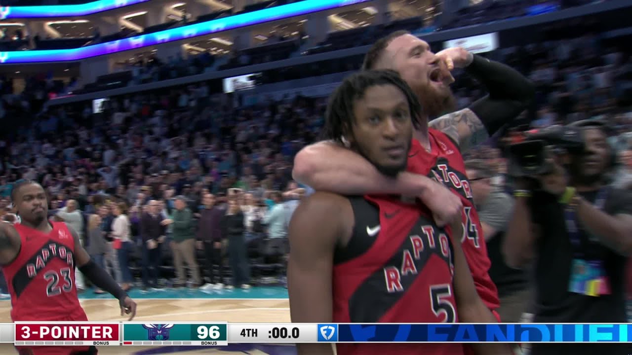 Charlotte pensait pourtant tenir la victoire lorsque LaMelo Ball a réussi un lay-up main gauche en pénétration à 1.6 seconde de la fin, donnant un court avantage aux Hornets (96-94). Mais la dernière action a été parfaitement exécutée par Toronto, Quickley sanctionnant la défense adverse sans trembler.