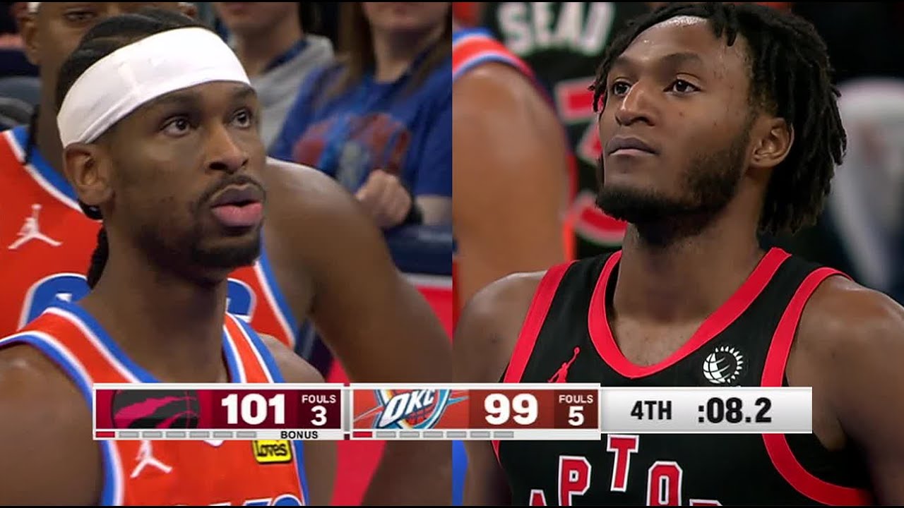 Toronto a pris l'avantage dès la première période (64-60 à la mi-temps) avant de subir le réveil d'Oklahoma City au troisième quart. Mais la solidité défensive des Raptors dans les dernières minutes, symbolisée par le contre de Barnes et leur domination au rebond dans les instants clés, leur a permis de conserver un mince avantage jusqu'au buzzer.