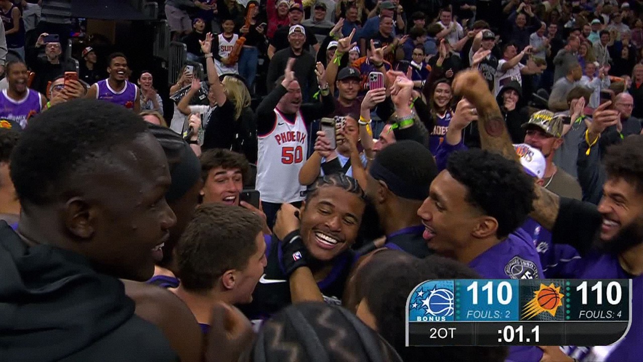 Jalen Green a inscrit le tir de la victoire depuis le corner droit au buzzer pour offrir le succès aux Suns après deux prolongations. Quelques secondes plus tôt, Jalen Carter avait égalisé pour Orlando à 1.1 seconde de la fin d'un tir à trois points depuis le corner opposé.