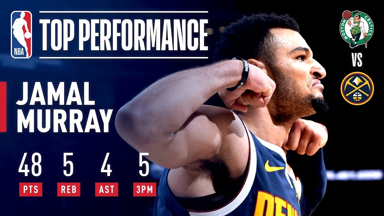 NYK (35-21) 02h30Auteur de 48 points à 19/30 aux tirs, 5/11 à trois points, 5/5 aux lancers francs, 5 rebonds et 4 passes décisives en 38 minutes de temps de jeu, Jamal Murray est sans aucun doute un des piliers offensifs de cette surprenante franchise du Colorado. Boston succombe à Denver 115 à 107.