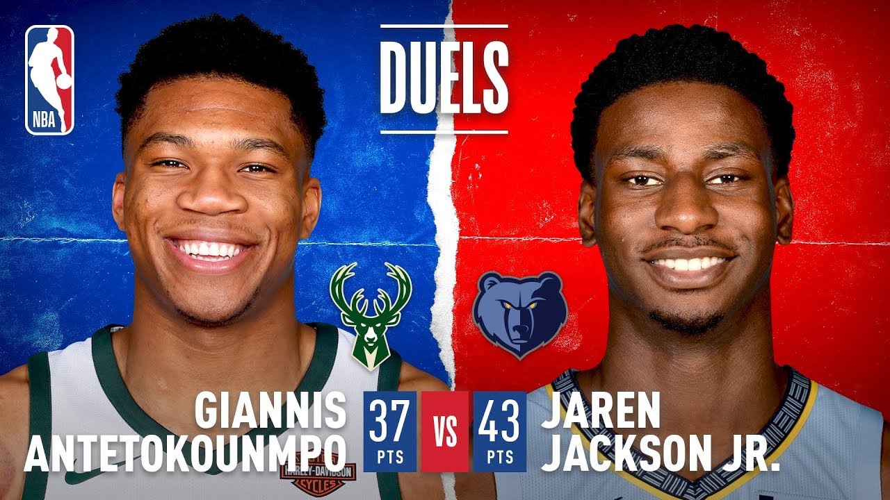 LAC (26-28) 04h30Giannis Antetokounmpo inscrit 37 points à 12/23 aux tirs dont 3/7 à trois points, 10/13 aux lancers francs et 11 rebonds en 27 minutes de temps de jeu. Néanmoins, on retiendra également la performance de son adversaire du soir, Jaren Jackson Jr. Le joueur des Grizzlies marque 43 points à 14/21 dont un terrible 9/15 à trois points, 6/9 aux lancers francs et 5 rebonds en 29 minutes sur le parquet.