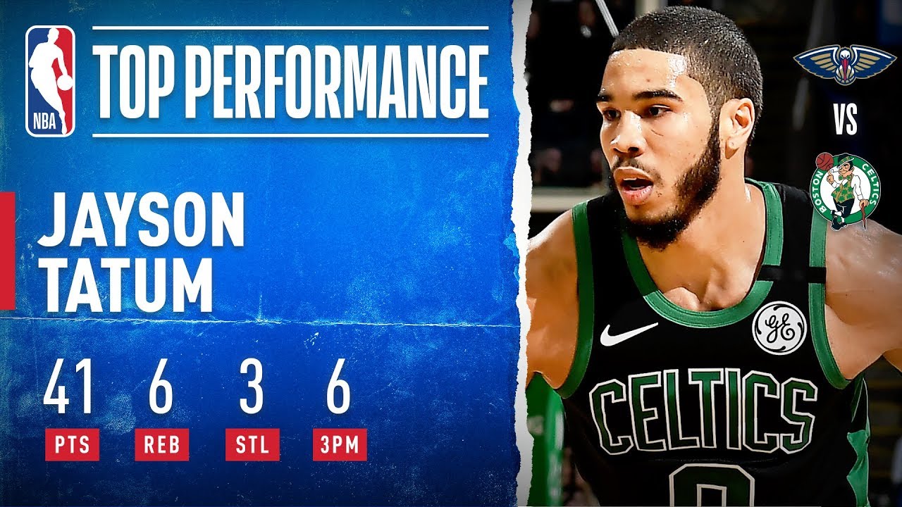 Dans la victoire facile des Celtics au TD Garden face aux Pelicans, Jayson Tatum a une nouvelle pris chaud et cette fois, le mercure a explosé. 41 points, 6 rebonds, 4 passes décisives, 6/9 à trois points, 16/22 aux tirs et aucune balle perdue en 30 minutes, l'ancien Blue Devil de Duke a tout fait à la franchise de Lousiane.