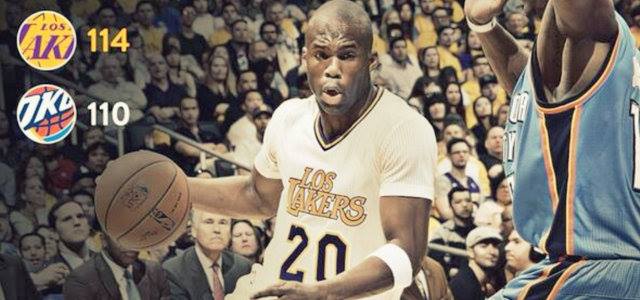Côté Lakers, Jodie Meeks survole les débats avec 42 points dont un magnifique 6/11 à 3pts, bien épaulé par Pau Gasol, 20pts, 11rbs.