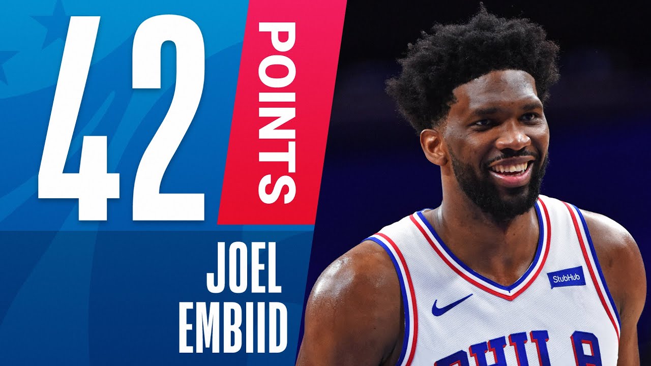 Face aux Celtics, Joel Embiid inscrit 42 points à 12/19 aux tirs, 1/5 à trois points, provoquant de nombreuses fautes avec 17/21 aux lancers francs et 10 rebonds en 33 minutes de temps de jeu. Philadelphia s'impose 117 à 109 face à Boston.
