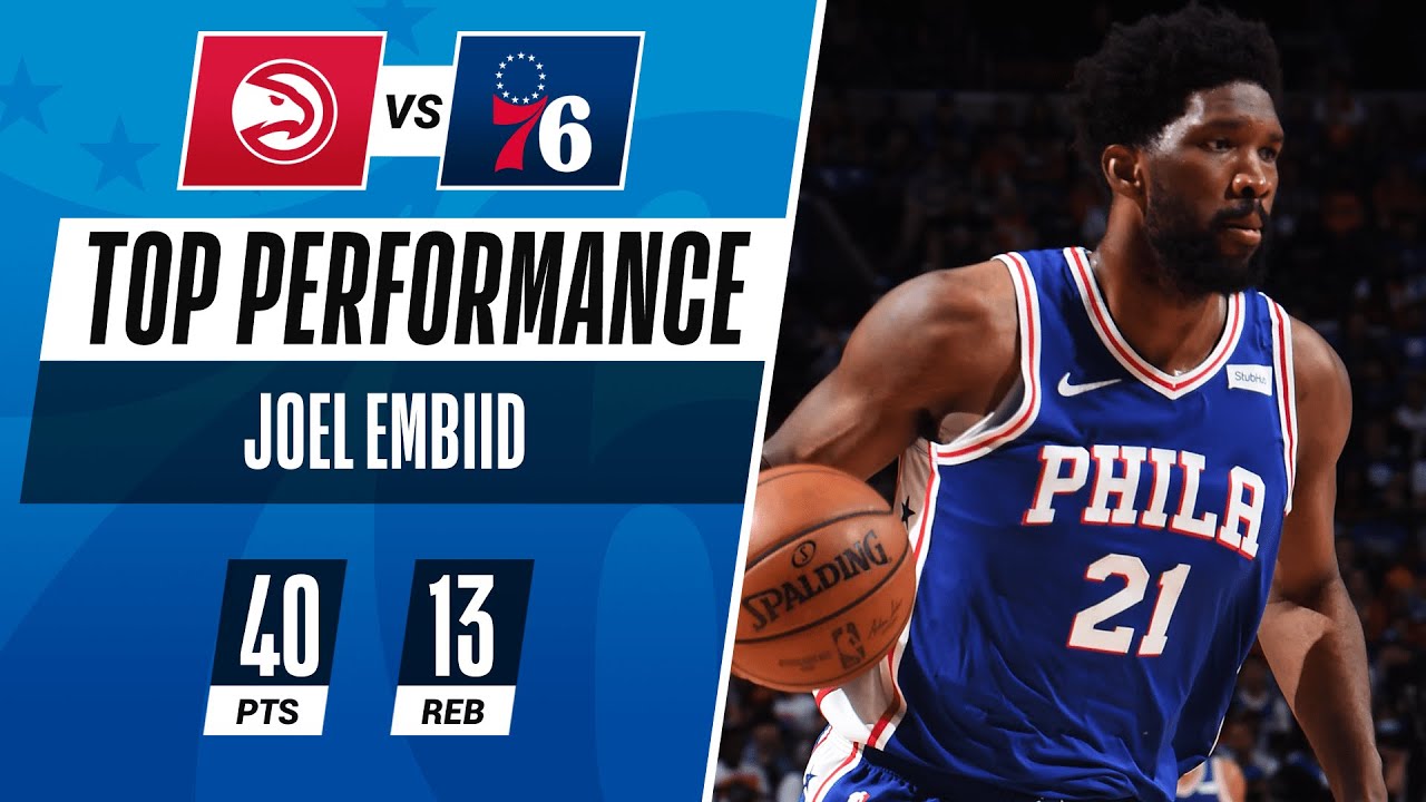 Dans la victoire des Sixers sur les Hawks 118 à 102, Joel Embiid marque 40 points (record personnel de points en playoffs) à 13/25 aux tirs dont 2/5 à trois points, 12/16 aux lancers francs et 13 rebonds en 35 minutes de temps de jeu.