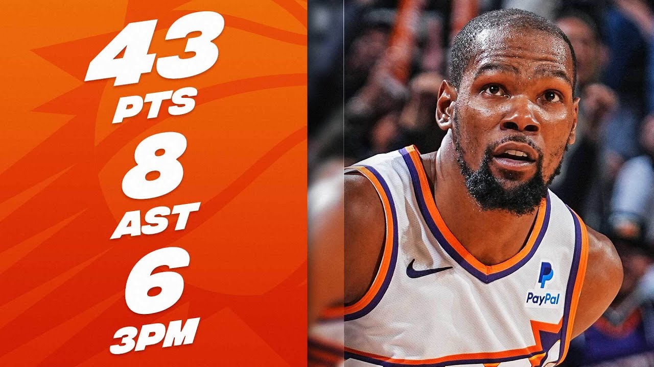 MIN (32-21) 21h00Auteur de 43 points (dont le shoot de la gagne) à 16/32 aux tirs dont 6/15 à trois points, 5/6 aux lancers francs, 8 passes décisives et 6 rebonds en 41 minutes de temps de jeu, la statistique de Kevin Durant passerait presque inaperçu en comparaison de celle de Joel Embiid (70 points cette nuit !).