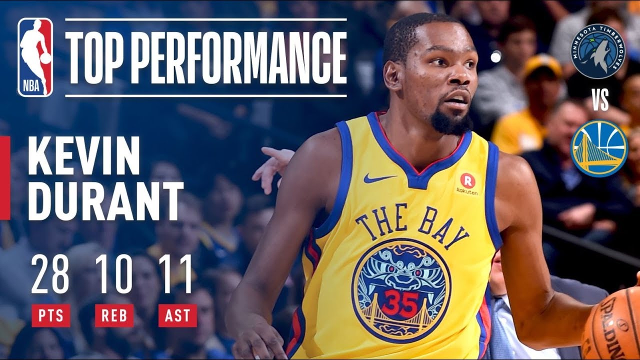 HOU (34-21) 03h30Auteur de son 10ème triple double en carrière, Kevin Durant inscrit 28 points à 10/19 aux tirs dont 6/9 à trois points, 2/2 aux lancers francs, 11 passes décisives, 10 rebonds, 3 contres et 2 interceptions en 37 minutes de temps. De quoi mettre les points sur les i, à l'Ouest, les Warriors restent les rois. Golden State est premier de la Conférence Ouest avec un bilan de 39 victoires et 10 défaites tandis que l'outsider Minnesota pointe à la 4ème place avec 31 victoires et 20 défaites.
