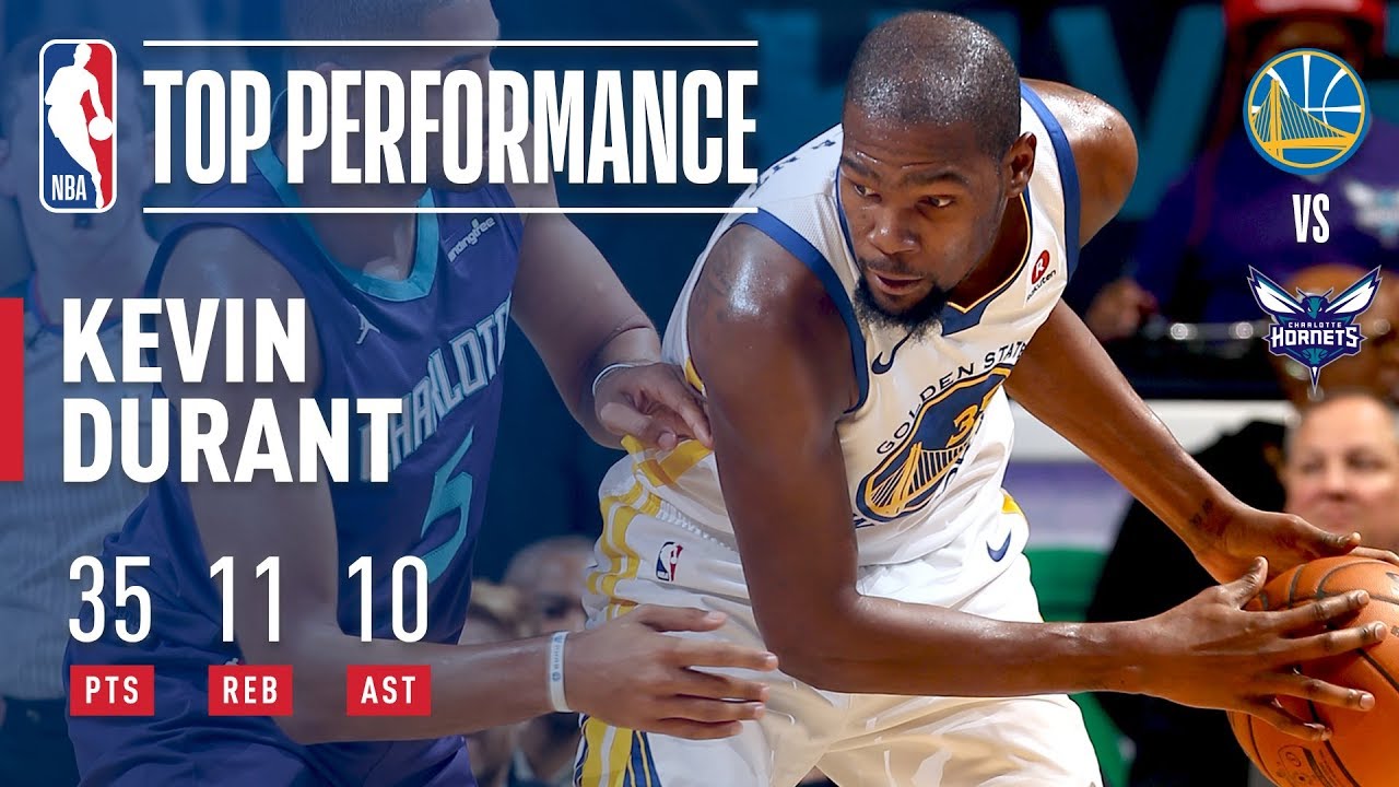 POR (9-16) 03h00Un 9ème triple double en carrière pour Kevin Durant, 35 points à 13/28 aux tirs dont 3/10 à trois points, 6/6 aux lancers francs, 11 rebonds et 10 passes décisives. La note est salée pour Charlotte qui affiche un bilan de 9 victoires et 14 défaites. Privé de Stephen Curry, tout va bien pour Golden State qui caracole à la seconde place de la Conférence Ouest avec 20 victoires et 6 défaites.