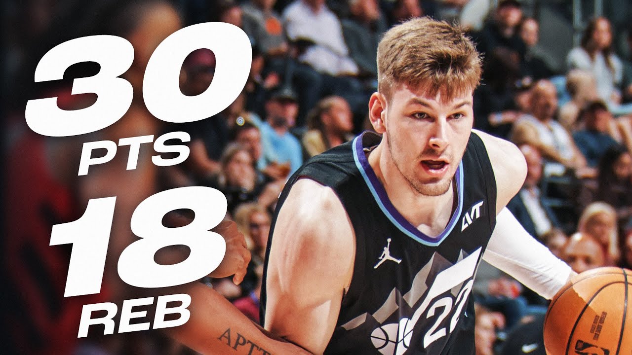 OKC03h30PrimeDans la victoire du Jazz sur les Trail Blazers 133 à 126 au Delta Center, Kyle Filipowski inscrit 30 points à 13/17 aux tirs dont 2/5 à trois points, 2/4 aux lancers francs, 18 rebonds, 5 passes décisives et 3 interceptions en 34 minutes de temps de jeu.
