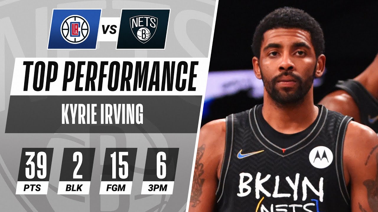 Face aux Clippers, Kyrie Irving signe 39 points à 15/23 aux tirs, 6/8 à trois points, 3/3 aux lancers francs et 5 rebonds en 37 minutes de temps de jeu. Il est bien aidé par les 23 points, 14 passes décisives et 11 rebonds de James Harden, 28 points et 9 prises de Kevin Durant.